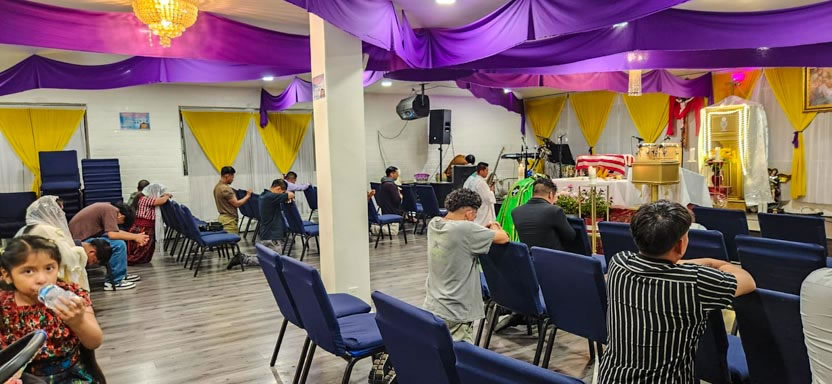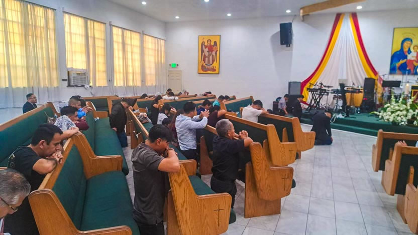 Ya bien entrada la noche del 6 de agosto, el arzobispo visitó la comunidad Pacto Divino, igualmente ubicada en el centro de la ciudad de Los Ángeles.