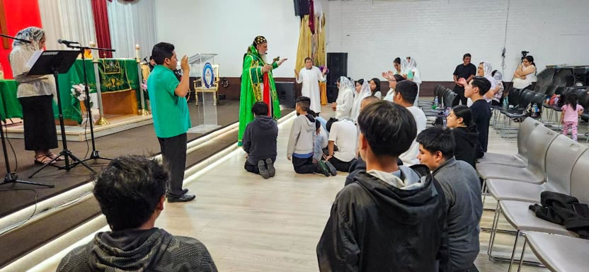 La visita a la comunidad Ministerio El Pescador concluyó con la celebración de la divina liturgia, la cual fue presidida por el arzobispo y contó con la activa participación de los fieles.