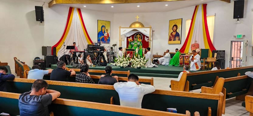 | 10: DIVINA LITURGIA CON MIEMBROS DE LA PARROQUIA SAN MIGUEL ARCÁNGEL, EAST RANCHO DOMÍNGUEZ. |