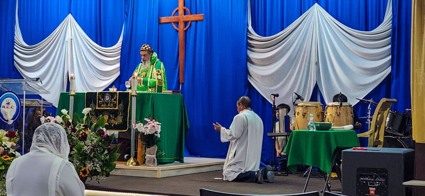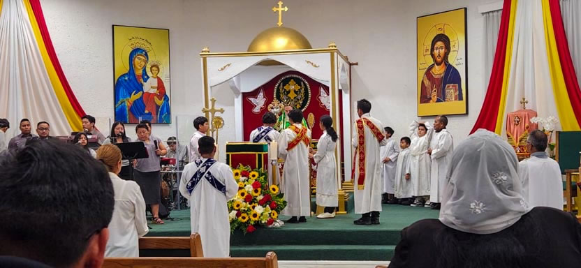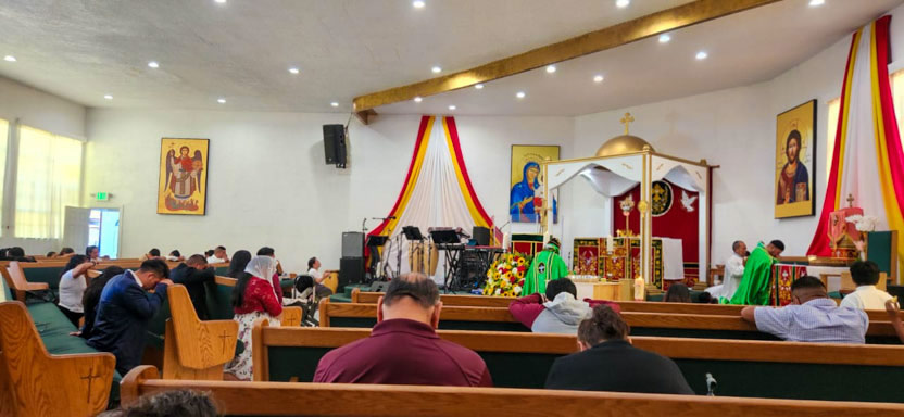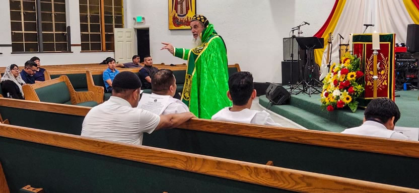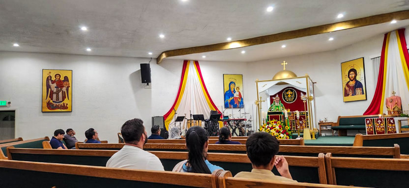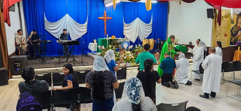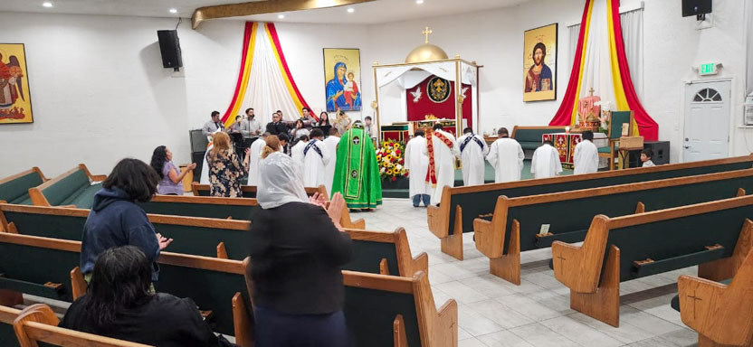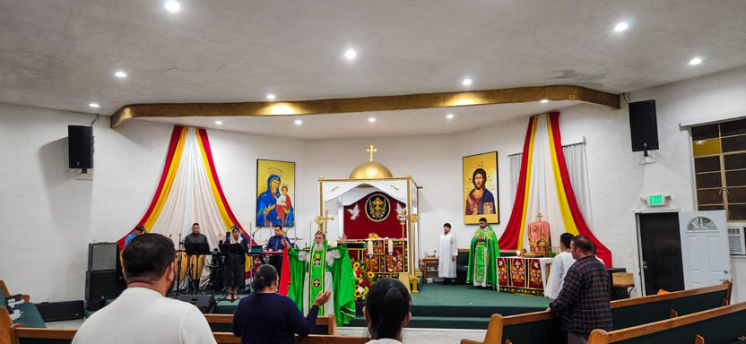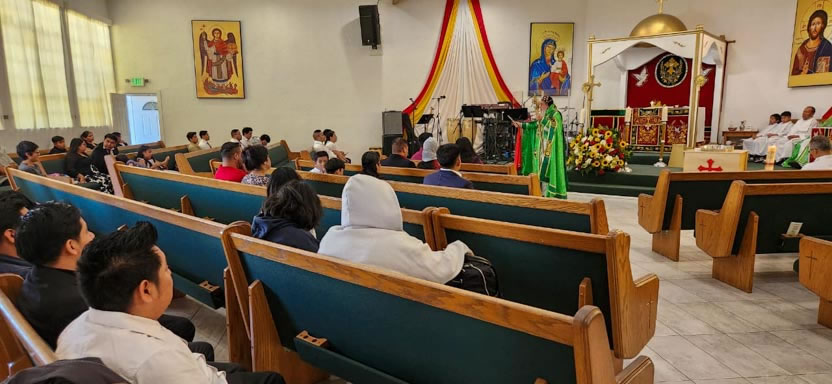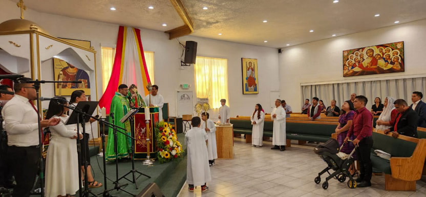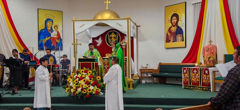 La asamblea litúrgica, reunida el domingo 7 en la sede parroquial de East Rancho Domínguez, encontró su plenitu en la celebración de la divina liturgia.