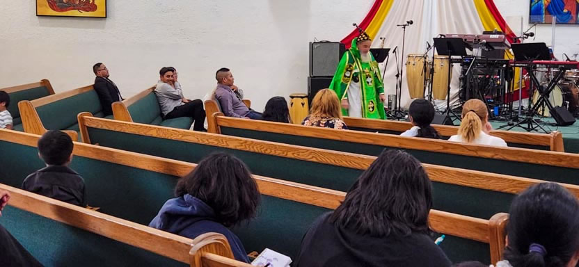 El mismo domingo 7, por la noche, el arzobispo llegó hasta la comunidad Santa María de Guadalupe, ubicada actualmente en Moreno Valley, Riverside, para realizar la visita mensual.