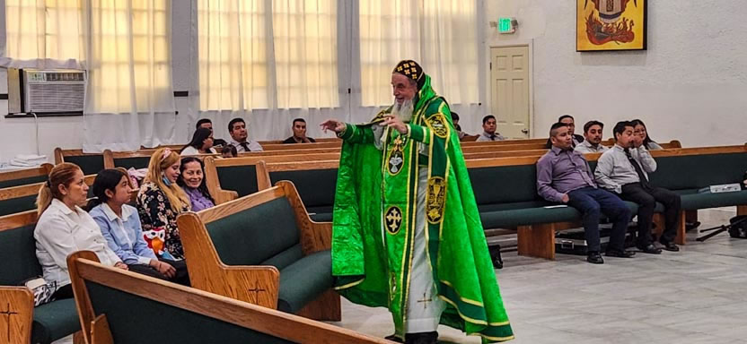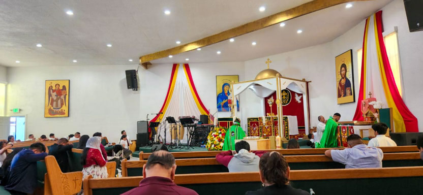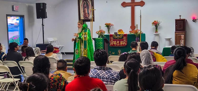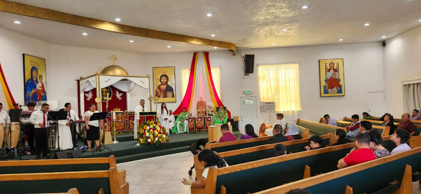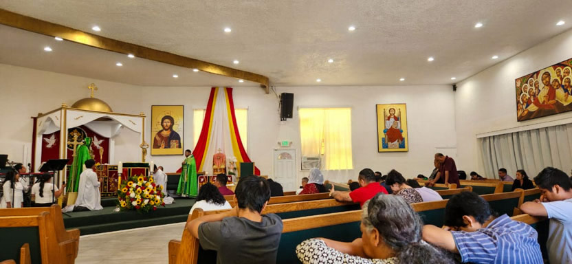 La visita a la comunidad Santa María de Guadalupe de Moreno Valley, Riverside, culminó con la celebración de la divina liturgia, la cual fue presidida por el arzobispo.