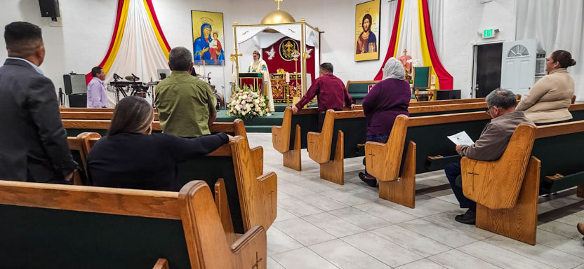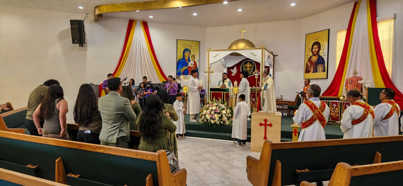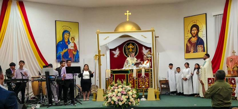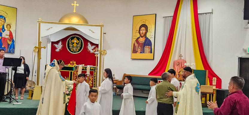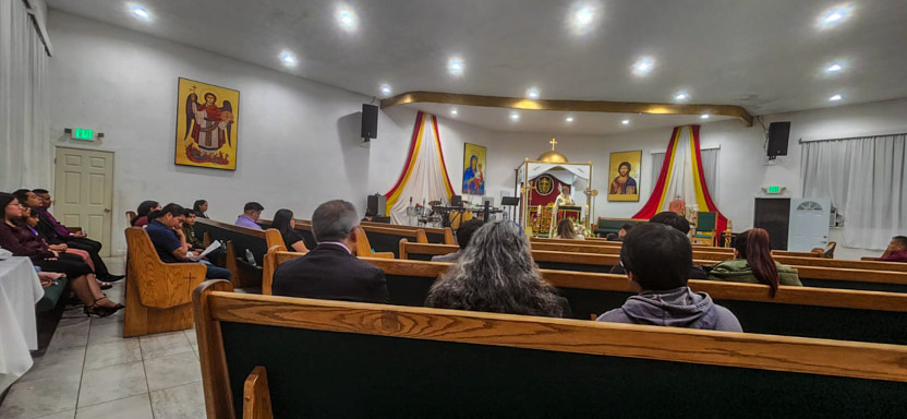 | 01: DIVINA LITURGIA EN LA SEDE DE LA PARROQUIA SAN MIGUEL ARCÁNGEL, EAST RANCHO DOMÍNGUEZ. |