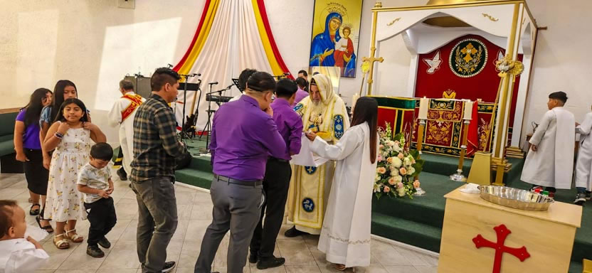 La visita sabatina a la comunidad Santa María de Guadalupe de Moreno Valley, tuvo su momento culminante con la celebración de la divina liturgia.