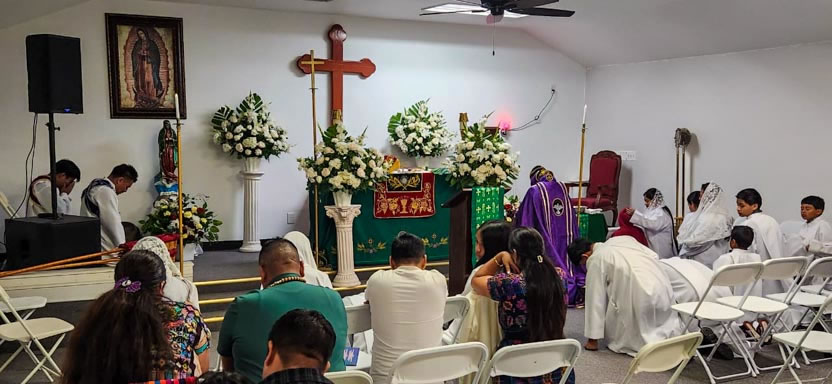 Seguidamente, se comenzaron las celebraciones litúrgicas en la parroquia San Miguel Arcángel, ubicada en East Rancho Domínguez.