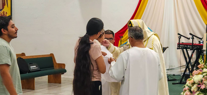 El arzobispo ungió con el óleo santo, pero también invitó a los padres de la niña a asumir una actitud de conversión: oró por elos y los bendijo, para que la paz reine en su hogar. |