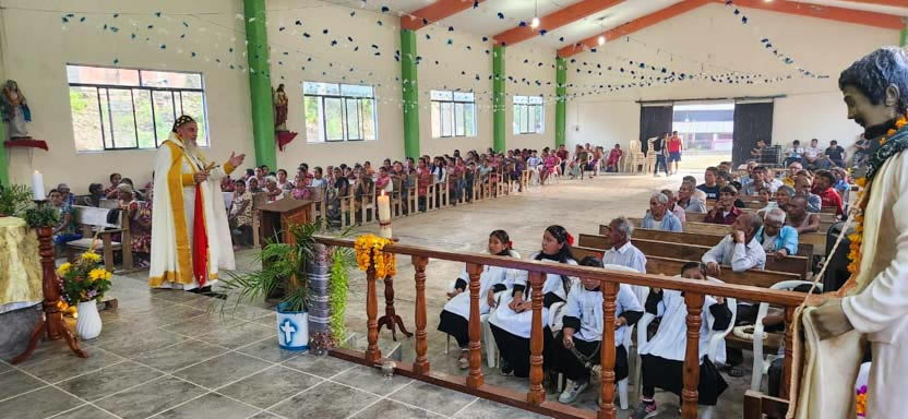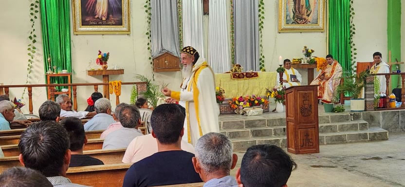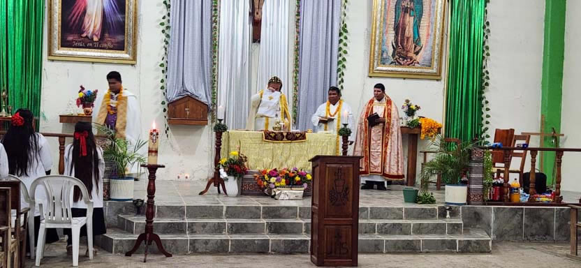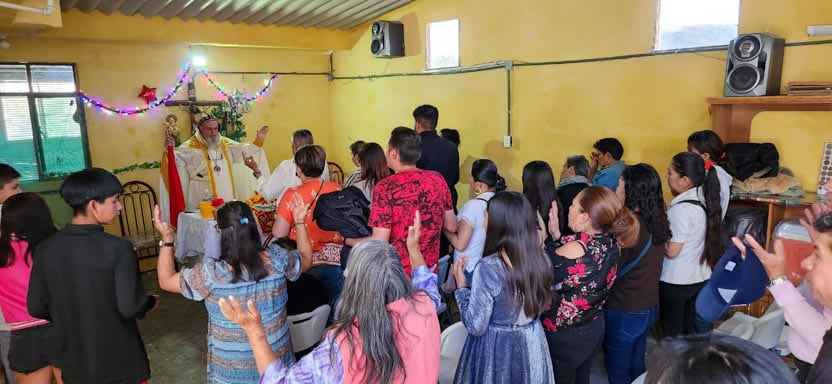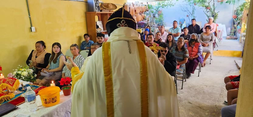 El mismo día, por la tarde, se tuvo el encuentro y la celebración litúrgica con los fieles. Se trata de comunidad de origen Tolteca, que hablan el idioma Náuatl.