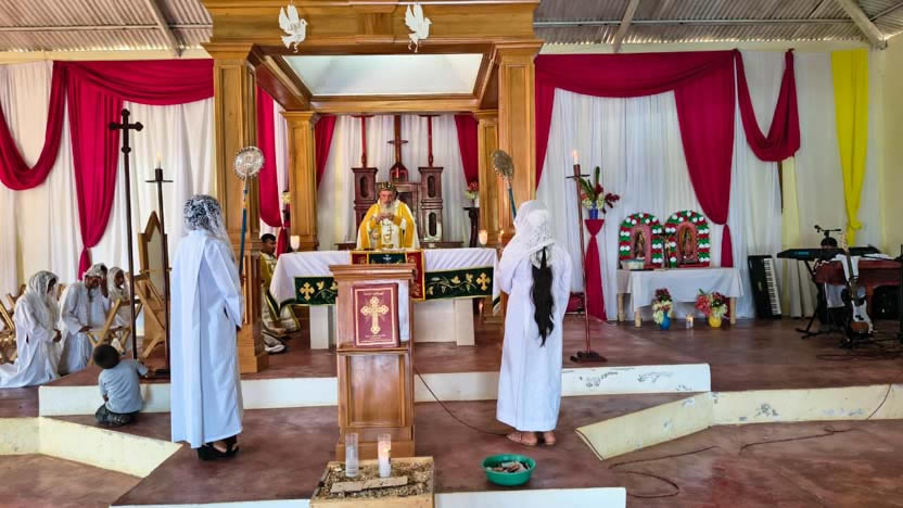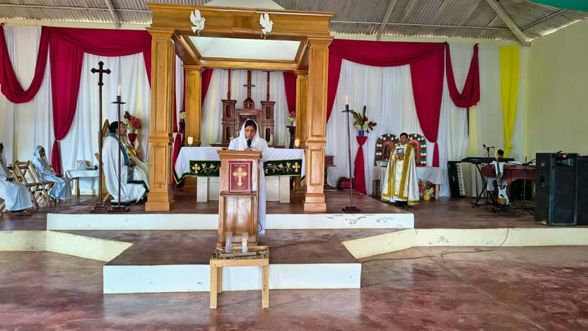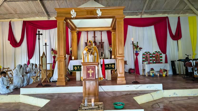 | 21: DIVINA LITURGIA EN LA SEDE PARROQUIAL BUEN PASTOR, AMPARO AGUA TINTA, MARGARITAS, CHIAPAS. |