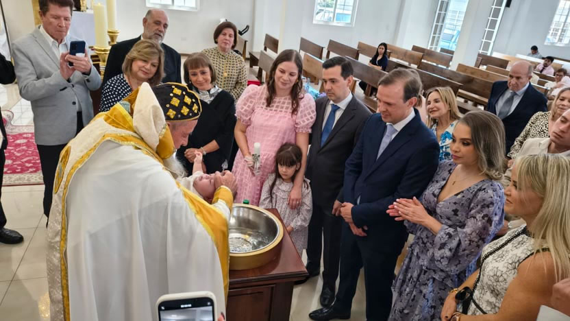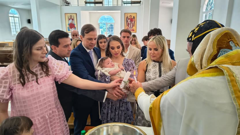 Hace un parte de meses, nació Mikel Aguirre, sobrino nieto del arzobispo, hijo de Andrés Eduardo y Cecilia, miembros de nuestra santa iglesia, siro ortodoxa.