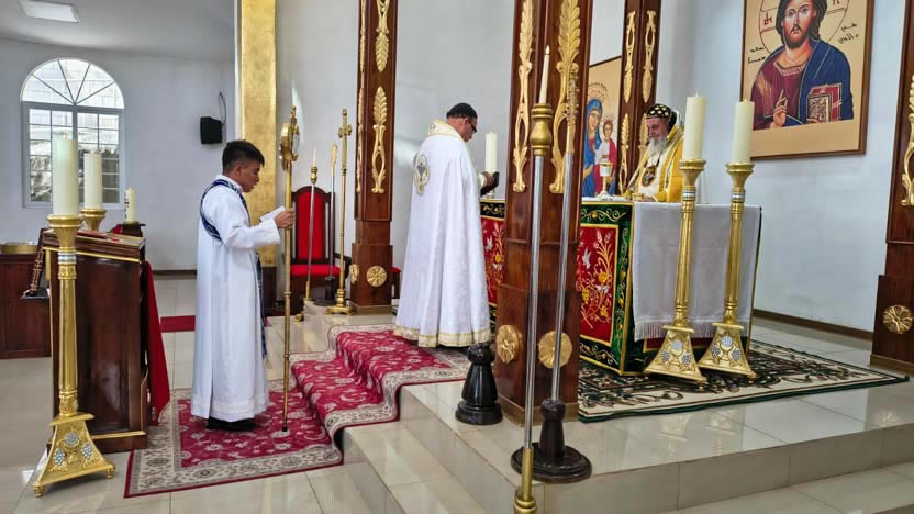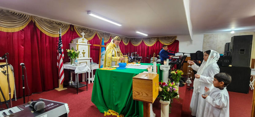 Después de la administración del bautismo y de la crismación, se continuó con la celebración de la divina liturgia, la cual fue presidida por el arzobispo.