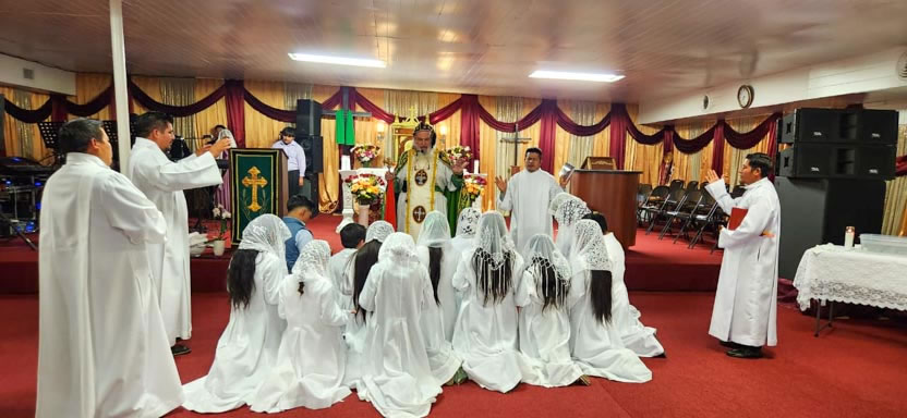 Desde largo tiempo, se preparó a un grupoo de seis niños, para que con ocasión de la visita del arzobispo, se les administraran los sacramentos de la iniciación cristiana.