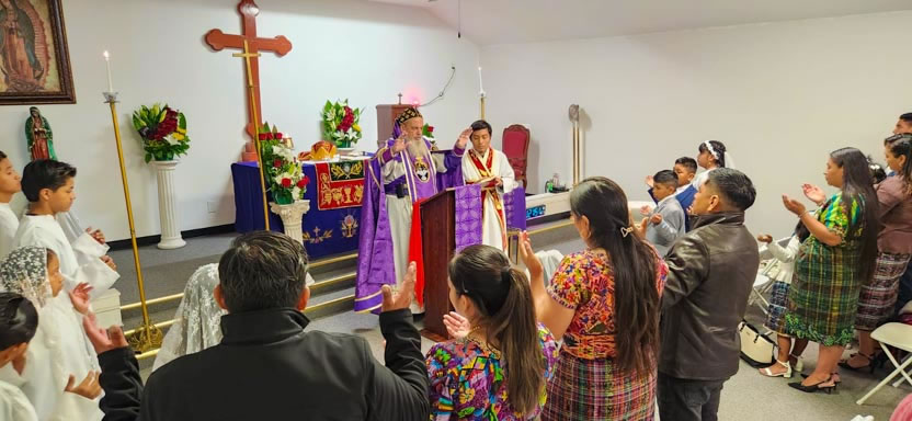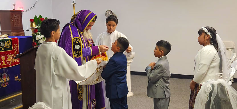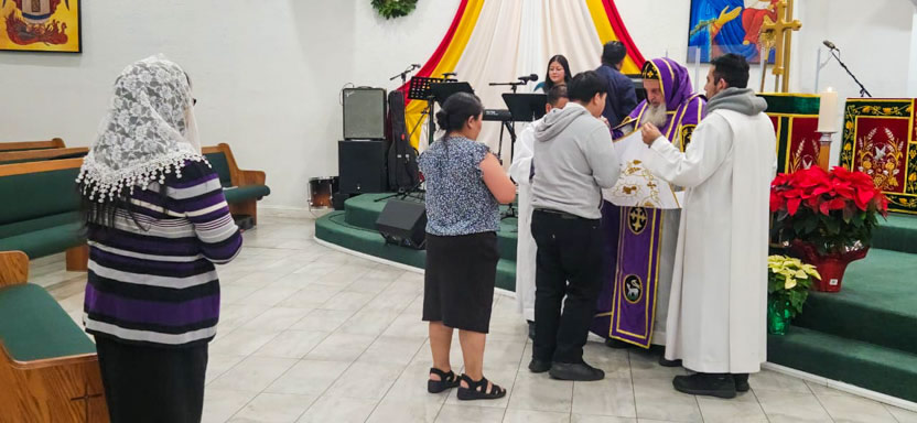 La visita sabatina a la comunidad Santa María de Guadalupe concluyó con la celebración de la divina liturgia, presidida por el arzobispo y contando con la participación activa de los hermanos.