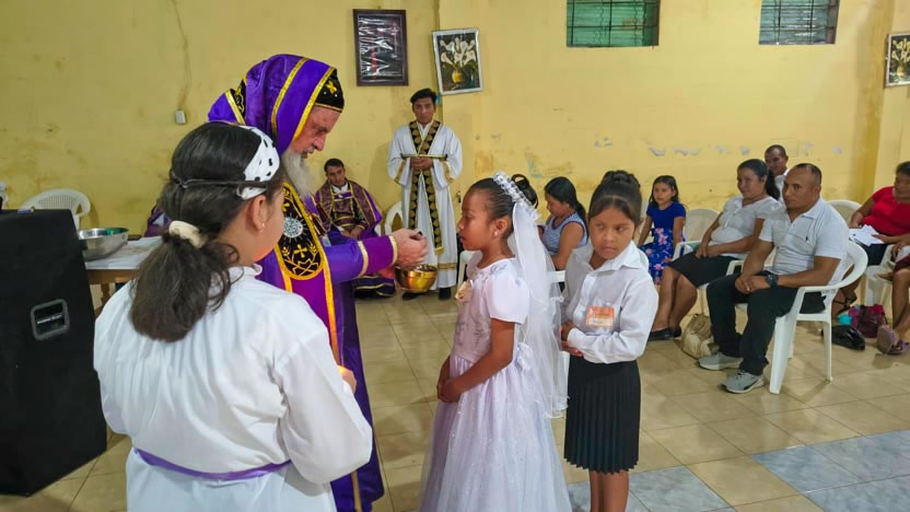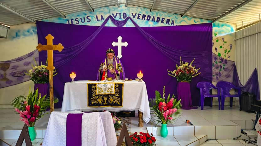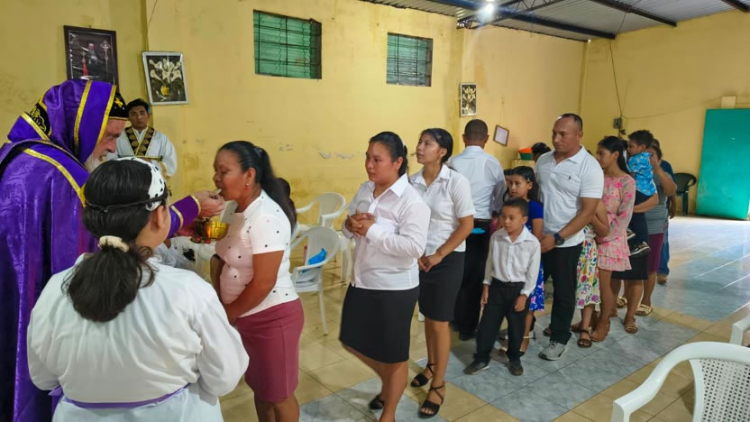 La visita a la comunidad se concluyó con la celebración de la divina liturgia, la cual fue presidida por el arzobispo y concelebrada por los padres Edwin y Luis Alfredo.