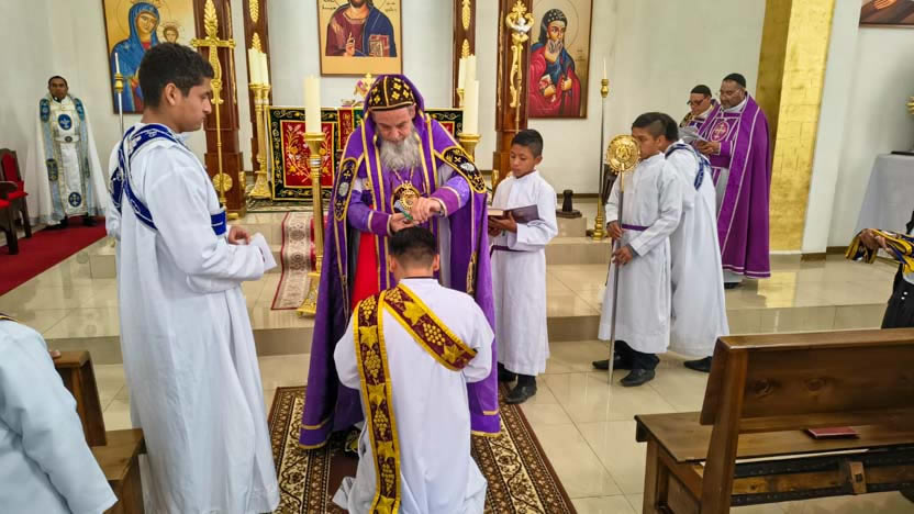 El domingo 28 de diciembre, por la mañana, Mor Santiago Eduardo presidió las celebraciones litúrgicas en la comunidad La Roca de los Siglos de Thomasboro.