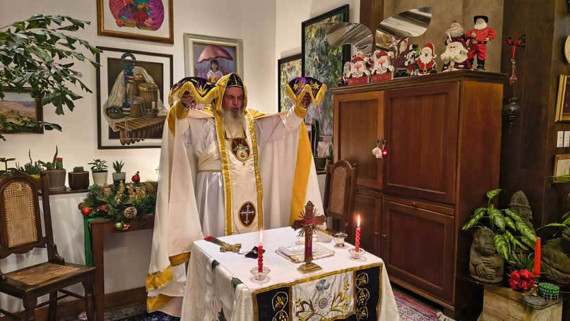 Siguiendo con una tradición que data de más de 25 años, la Noche Buena, el arzobispo celebró la divina liturgia con familiares y amigos cercanos, en la residencia de su hermana.