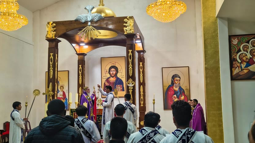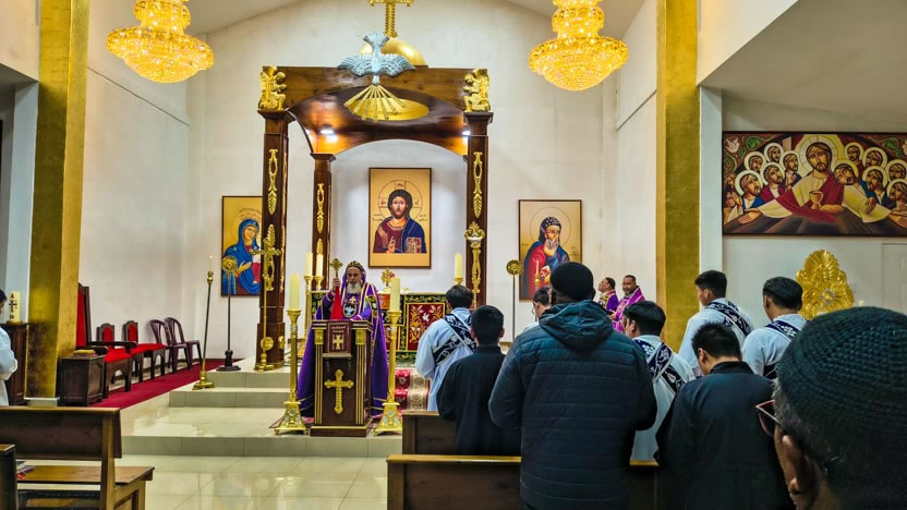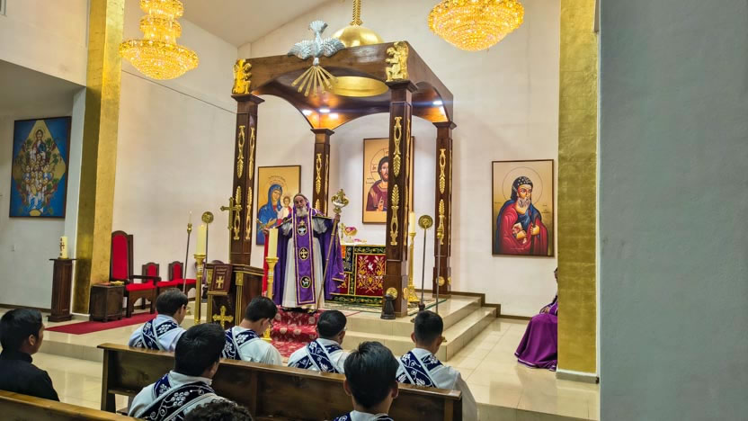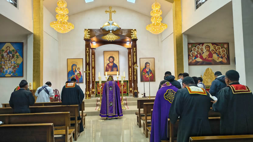 Por la noche, el arzobispo presidió la celebración de la divina liturgia, en la que participaron los presbíteros de la Arquidiócesis, así como los seminaristas.