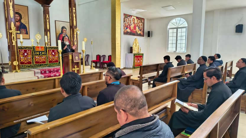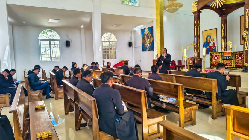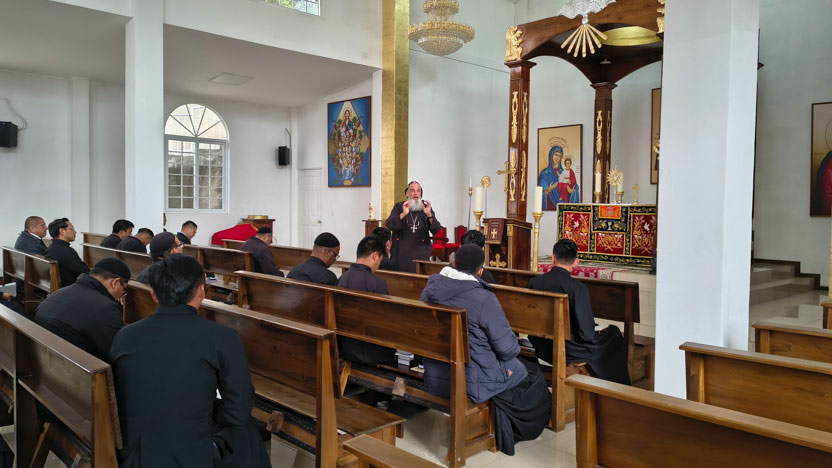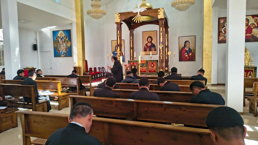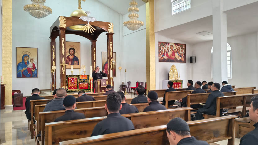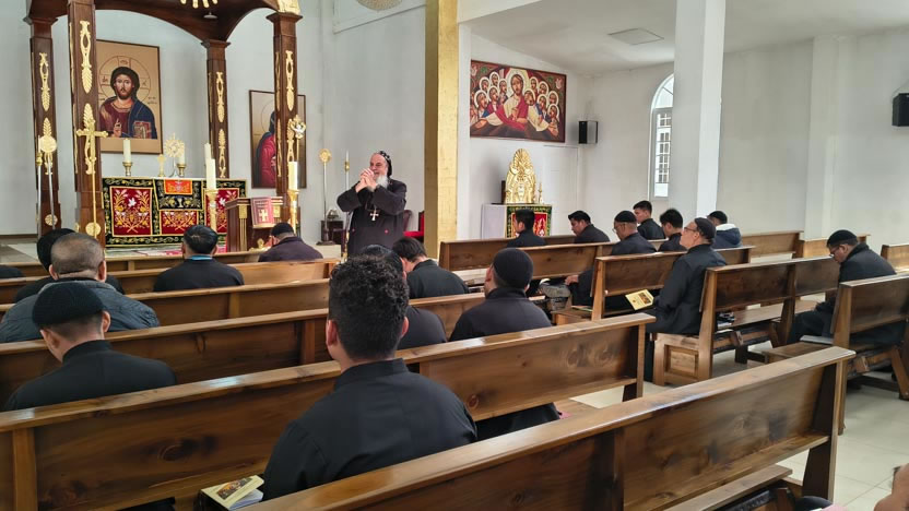 La jornada concluyó con la celebración de la divina liturgia de inauguración de los Ejercicios Espirituales. Presidió la celebración el arzobispo y concelebraron los presbíteros.