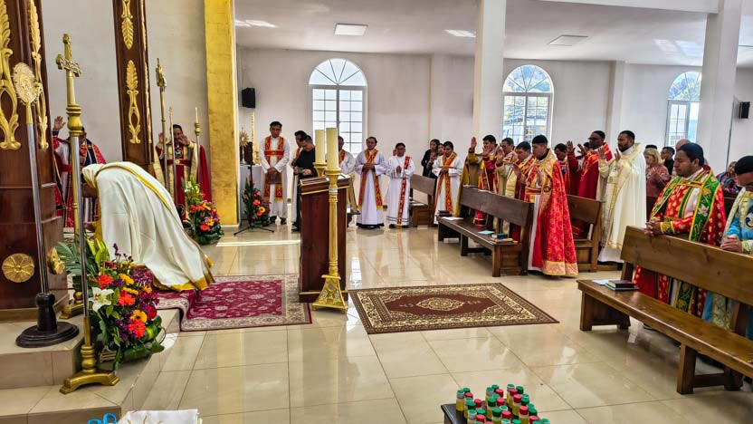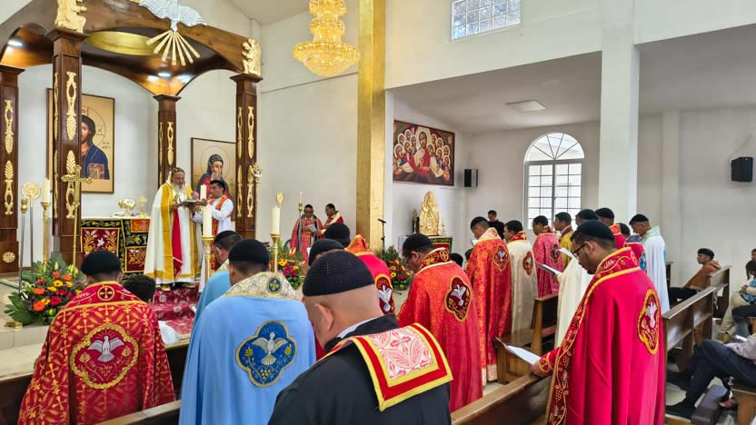 Terminada la ordenación del presbítero, después de entregarle los divinos misterios, se continuó con la celebración de la divina liturgia, como determina el ritual.