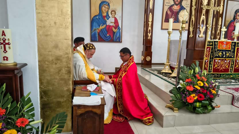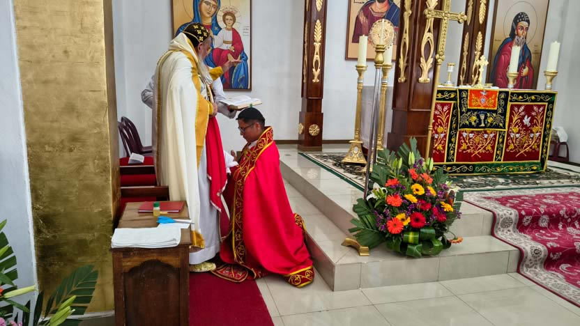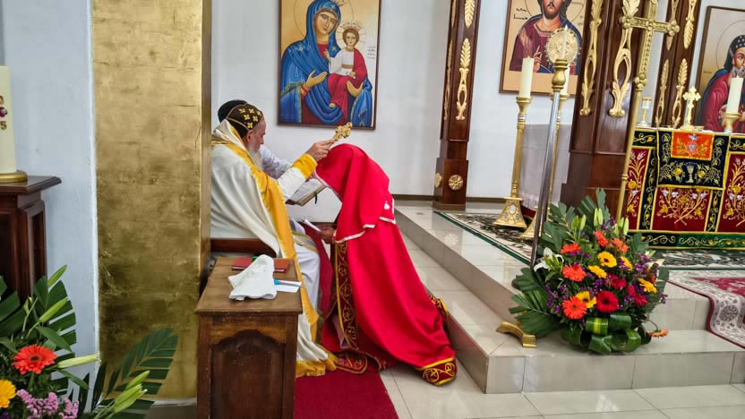 Al final de la Anáfora de Santiago, como está previsto en el ritual siro ortodoxo de ordenacións, el arzobispo administró el sacramento del órden al diácono Axel.