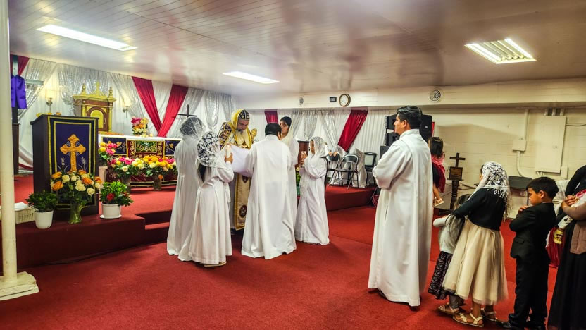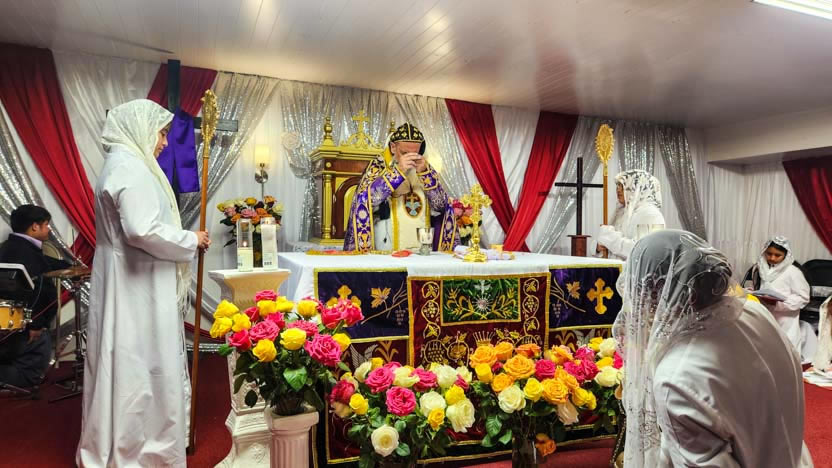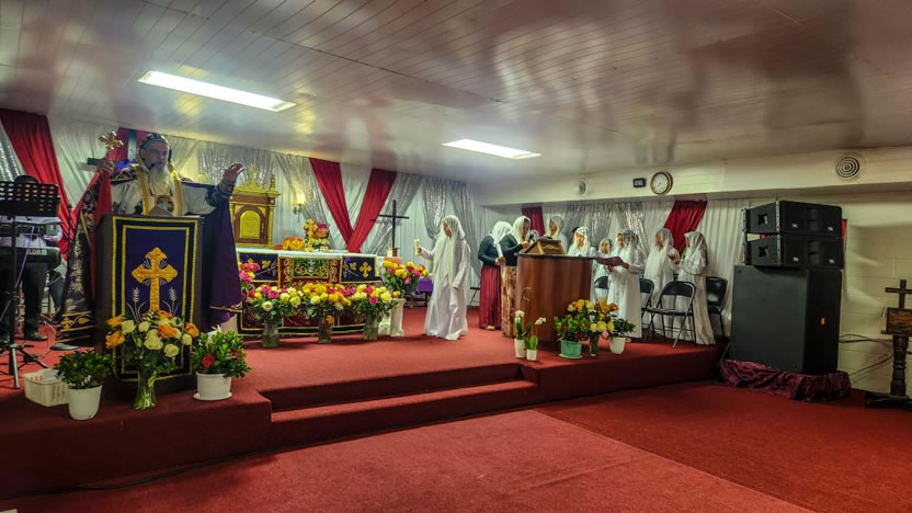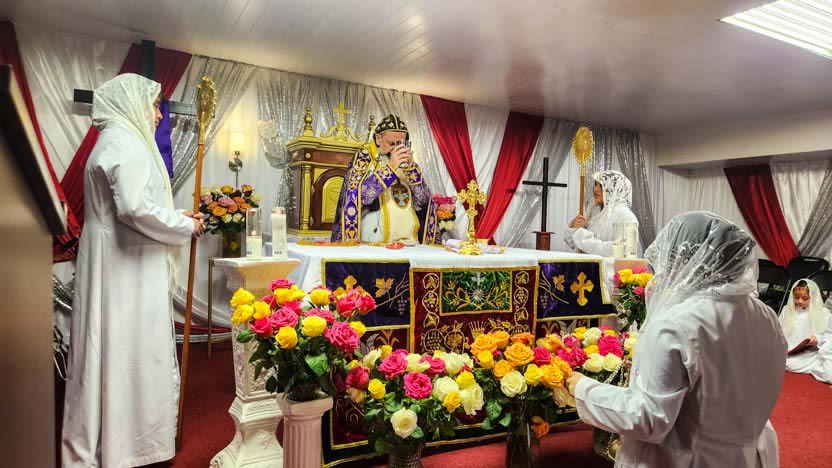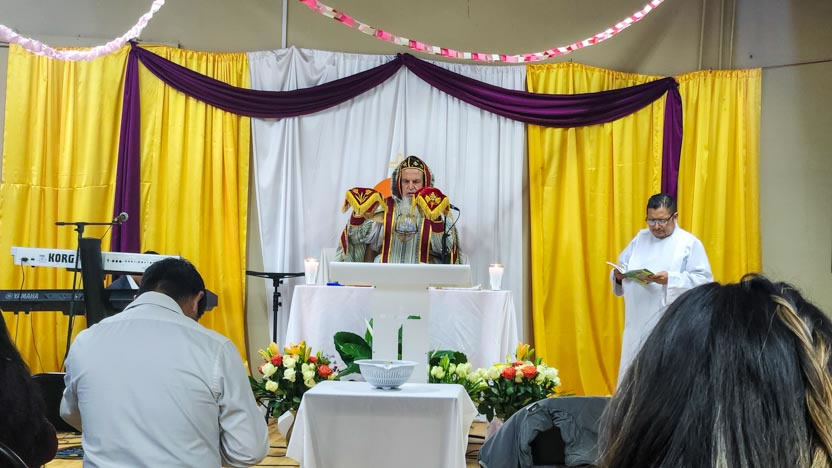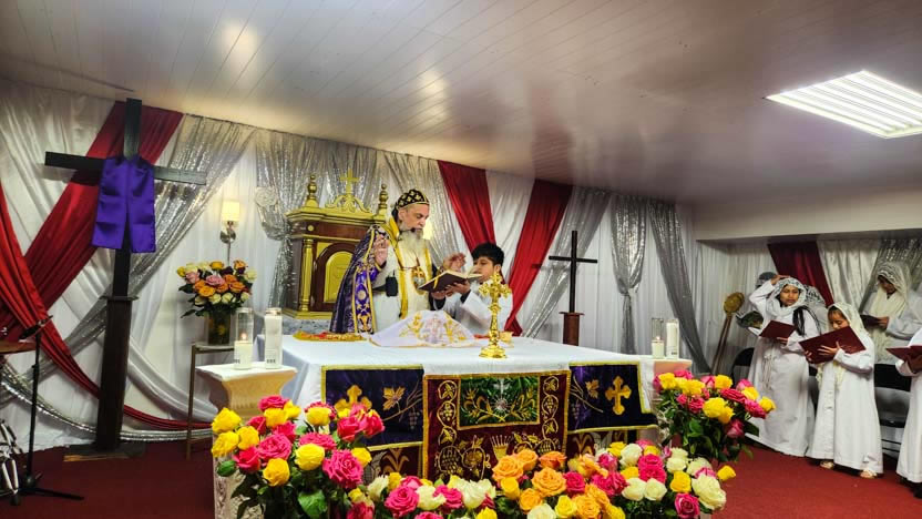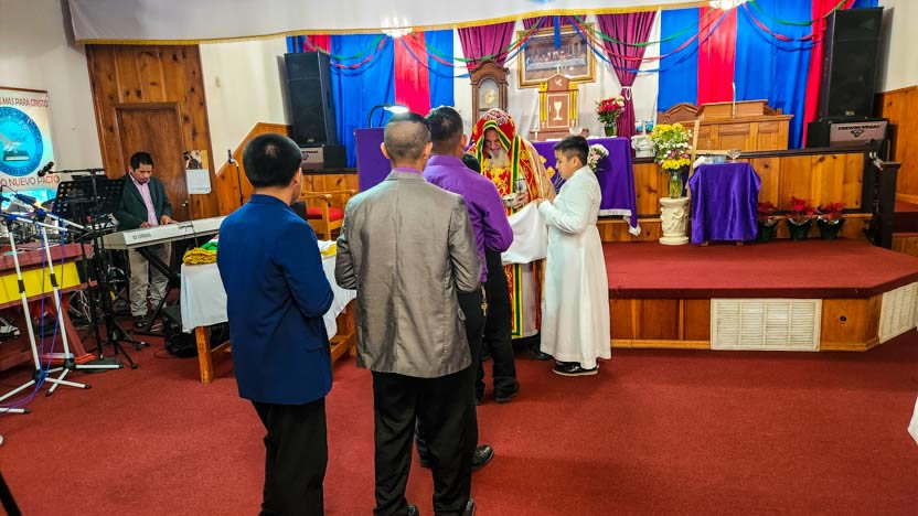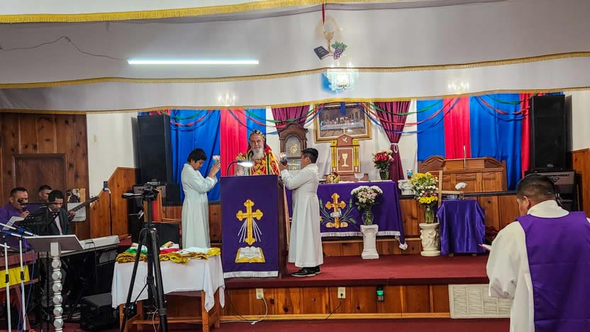 La visita a la comunidad Cristo Resucitado culminó con la celebración de la divina liturgia, la cual fue presidida por el arzobispo y contó con la participación activa de los hermanos.