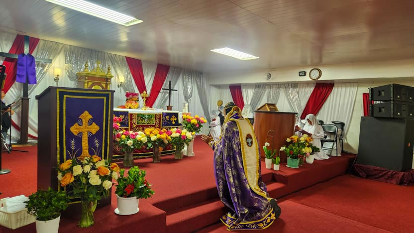 Allí, el arzobispo presidió la celebración de la divina liturgia, en la que todos participaron con actitud de profunda fe.