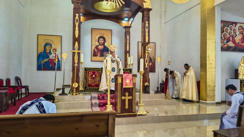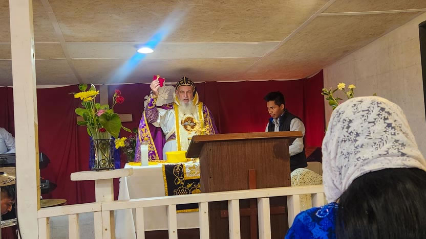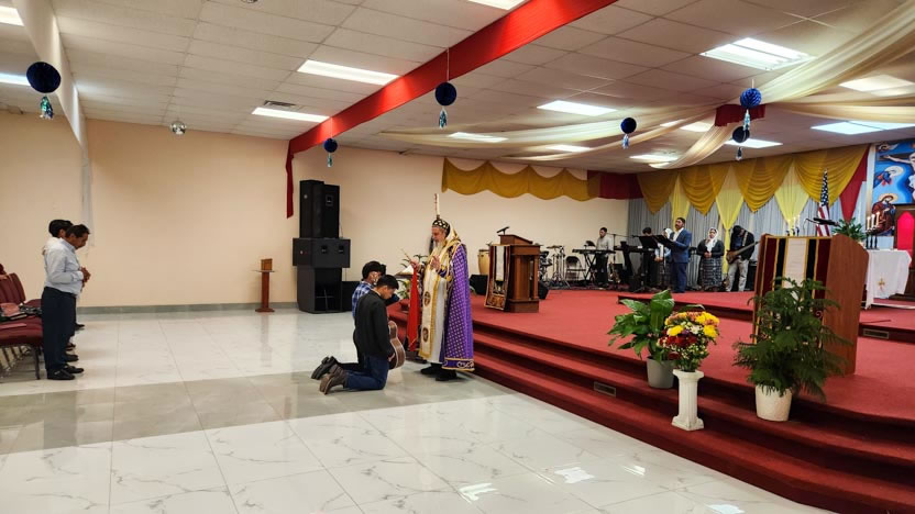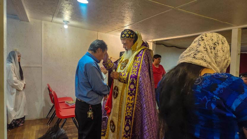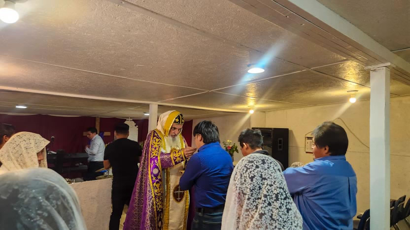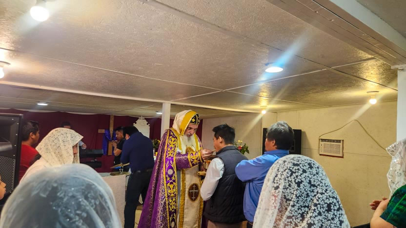 La visita a la comunidad Cristo Rey culminó con la celebración de la divina liturgia. El arzobispo presidió la celebración, correspondiente al quiento domingo de cuaresma.