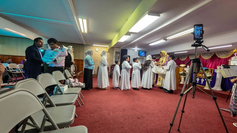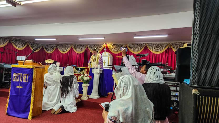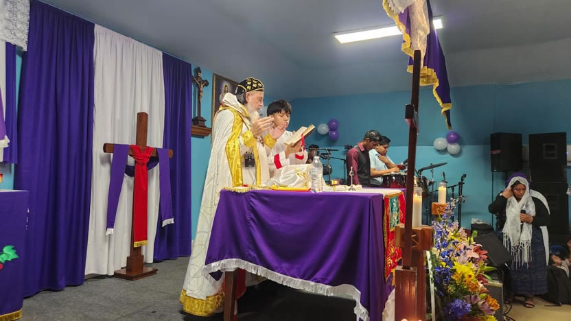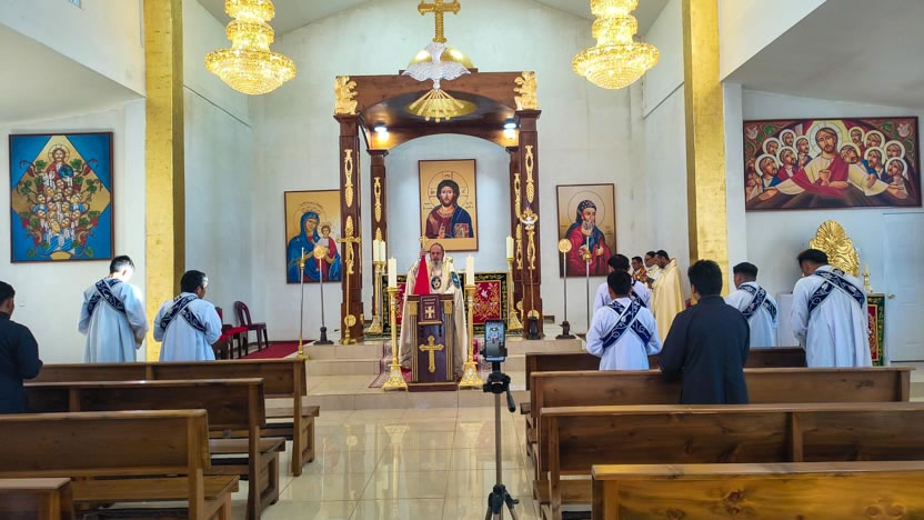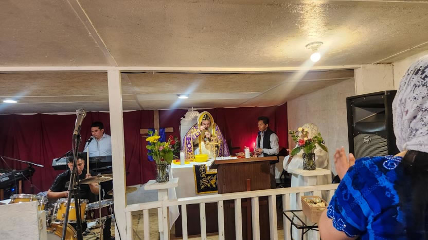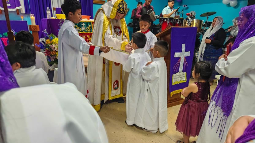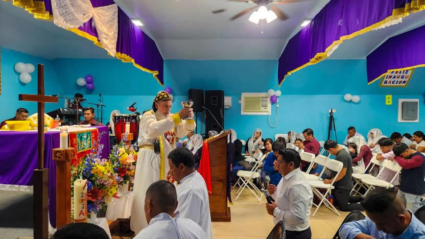 La visita a la comunidad La Voz del Espíritu Santo culminó con la celebración de la divina liturgia, la cual fue presidida por el arzobispo y activamente participada por los fieles.
