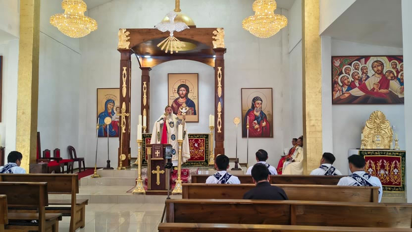 El arzobispo presidió la celebración de la divina liturgia, en la Solemnidad de la Encarnación del Hij de Dios en el seno de la Virgen María. Se contó con la activa participación de los seminaristas.