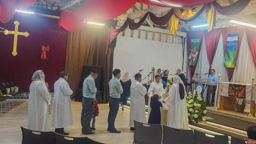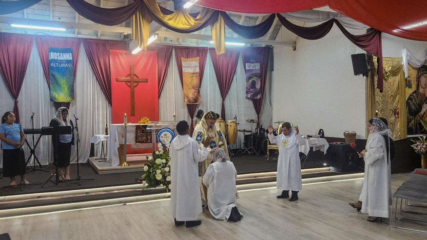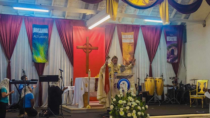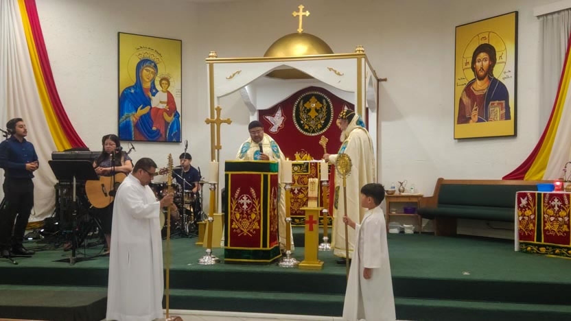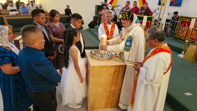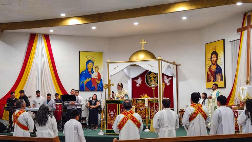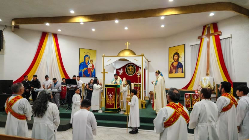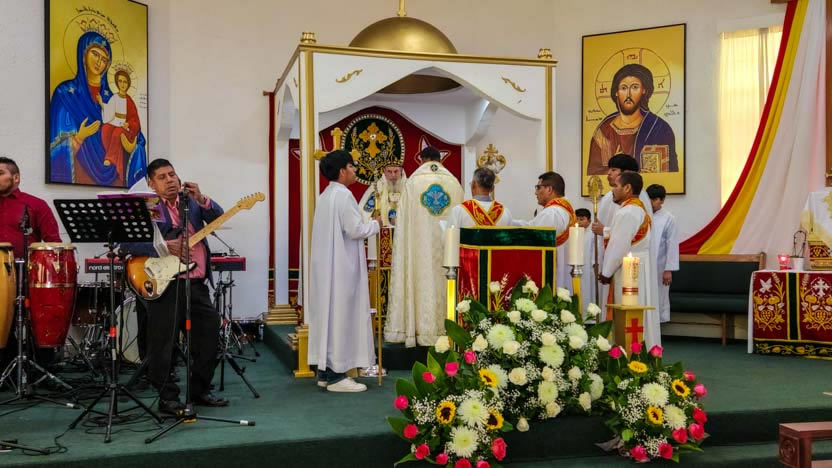 La actividad en la comunidad Santa María de Guadalupe culminó con la celebración de la divina liturgia, la cual fue presidida por el arzobispo y contó con la activa y comprometida participación de los fieles.