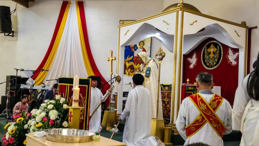 La visita a la comunidad Santa María de Guadalupe, tuvo su momento culminante con la celebración de la divina liturgia, la cual fue presidida por el arzobispo.